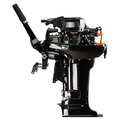 Мотор запускается ручным стартером и управляется стандартным румпелем с поворотной ручкой газа (гашеткой мотоциклетного типа) с антипроскальзывающими насечками.